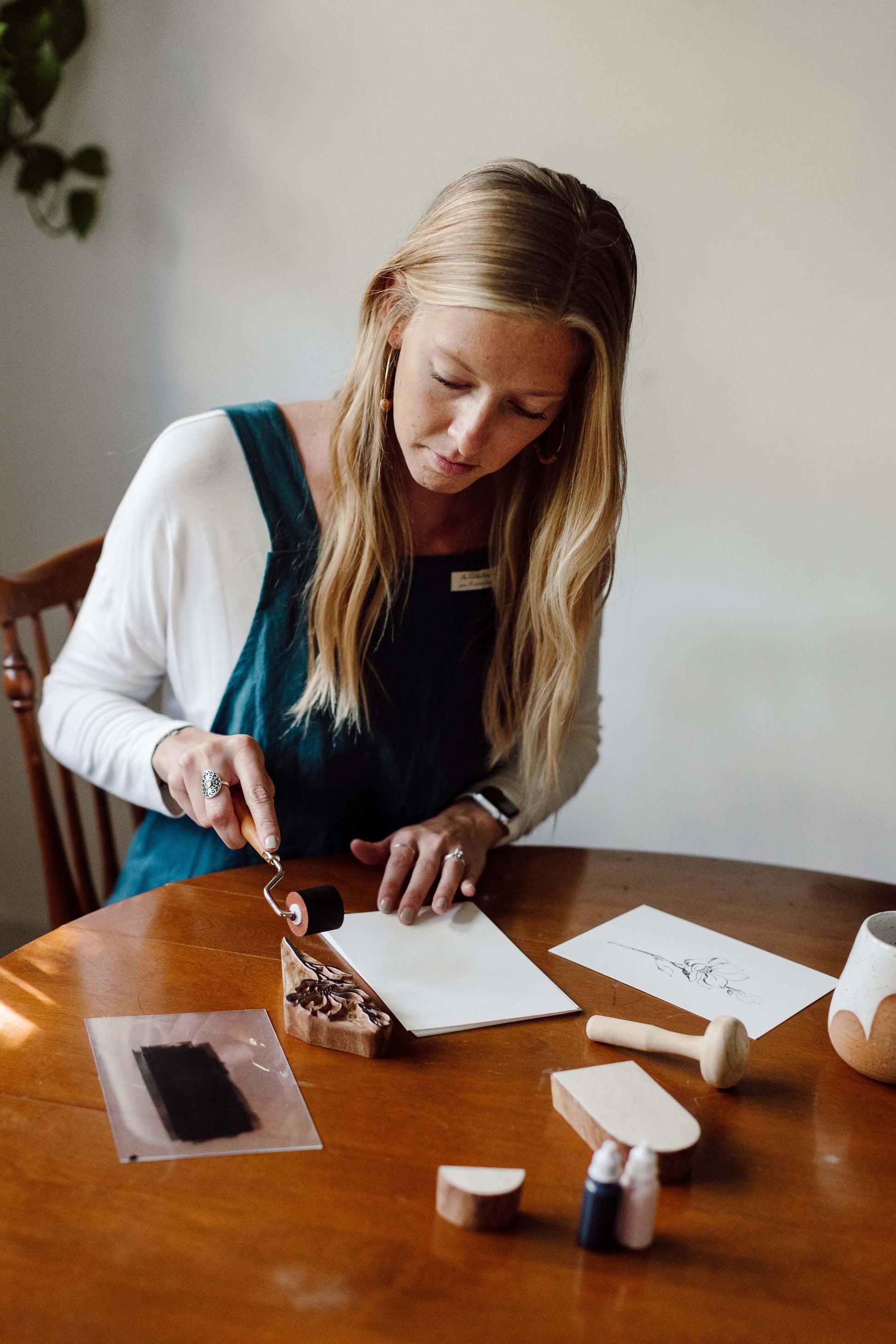 A thoughtfully designed apron for creative work and everyday making. The cross back style slips easily over your head with no ties or fasteners, offering comfort, coverage, and freedom of movement. Made from durable cotton, it’s perfect for painting, printmaking, cooking, and studio time of any kind.