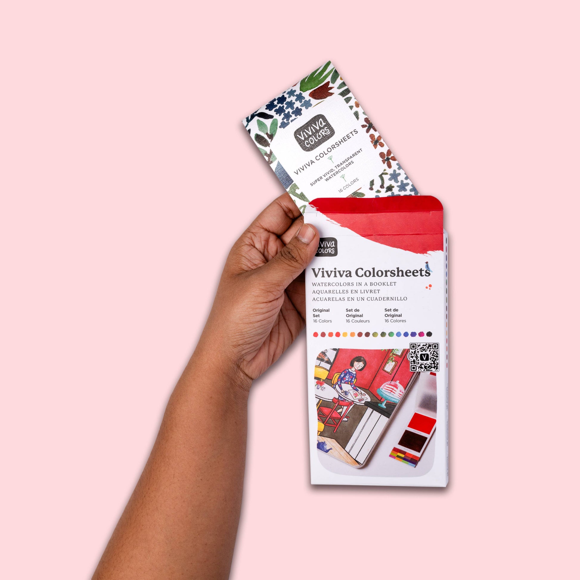 Meet your new favorite travel companion for creativity! The Viviva Original Colorsheets pack 16 brilliantly vibrant watercolor shades into a sleek, portable format—so you can paint anywhere: in a café, on a train, up in the hills, or wherever inspiration finds you.